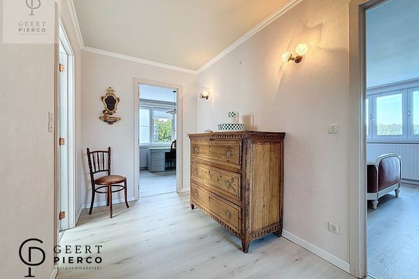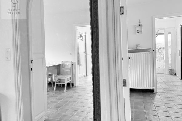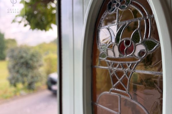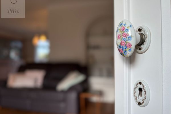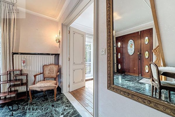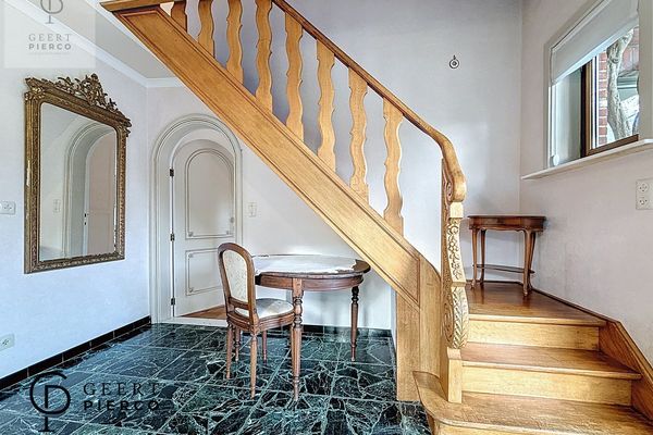 Via de voordeur met loodglas betreden we de woning. De statige inkomhal zet meteen de toon en nodigt uit om verder te ontdekken.