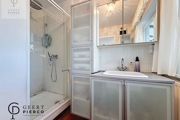 Via de keuken bereik je een tussengang met een douchekamer en een apart toilet, en kan je ook rechtstreeks naar buiten. Handig en functioneel.