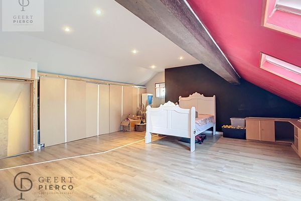 Op de eerste verdieping : 3 slaapkamers en tevens werd ook de zolderkamer, bereikbaar via een vaste trap, volledig ingericht.