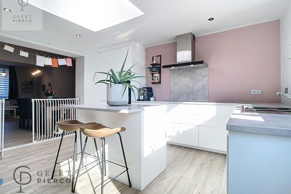 Voordelen nog es op een rijtje : zonnepanelen aanwezig sinds 2020 (13 stuks, zonder groene stroomcertificaten), alarm (verisure), airco's in de keuken en op 2 slaapkamers, rolluiken in de slaapkamers, rechts van de woning heb je een zijingang naar de tuin, twee garages achteraan in de tuin langs het wandelpad, vloeren en plafonds geïsoleerd, 4 slaapkamers en een topkeuken...