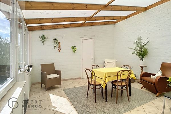 In de veranda is het aangenaam vertoeven en kan je via een paar kleine bergingen meteen naar het terras en de tuin volledig zuiders en zuidwest gericht. de foto's hiervan spreken voor zich.
