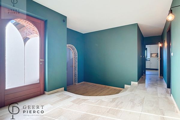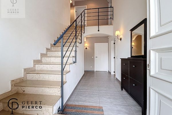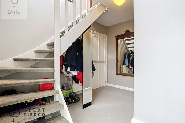 Van zodra we deze woonst betreden komen we terecht in de inkomhal met gastentoilet. Via de deur aan onze linkerzijde bet...