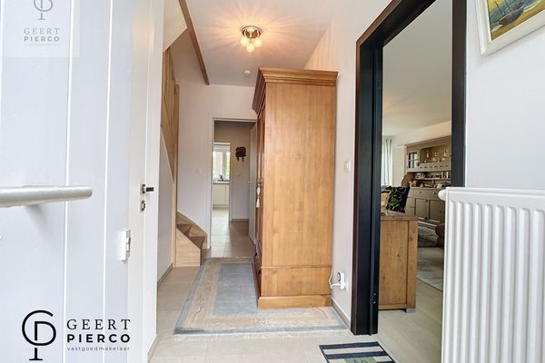 Via het beklinkerde tuinpad begeven we ons naar de centrale inkomhal van deze mooie bungalow. De inkomhal met gastentoil...